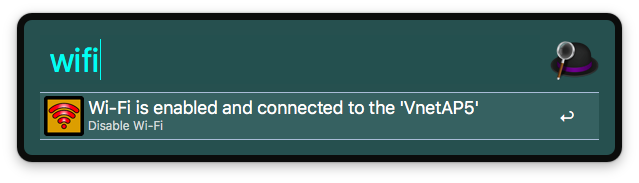Type wifi and workflow shows the current adapter state and shows you will happen if you continue.