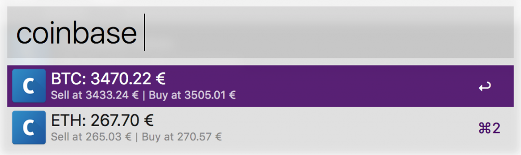 Get Spot/Buy/Sell prices of Bitcoin and Ether straight from Coinbase.