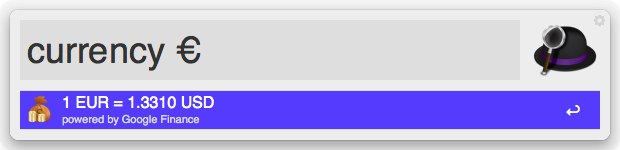 Currency Converter accepts simple and complex queries. Important: all output results are fetched from Google Finance and might not be in real-time.