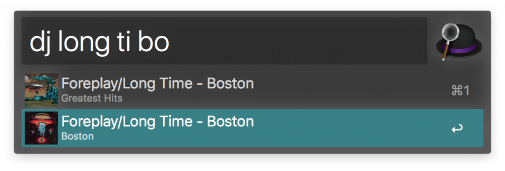 Usage is incredibly simple. Just type dj followed by any combination of a song's name, artist or album title and Alfred will present you with a list of songs in your iTunes library that match the search term.