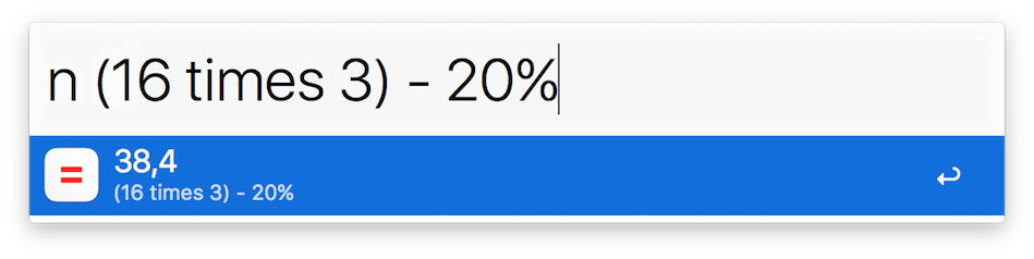 Numi is a calculator app that allows to describe tasks the natural way and instantly get an accurate answer. For example, $20 in euro - 5% discount or today + 2 weeks.