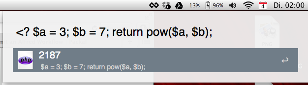 The quick tester can be called with the key "<?". After this you can input any PHP code, that can be returned! (only that, no echo/print). Write <? 3+3 or <? base64_encode('php master') or test some longer codes with: