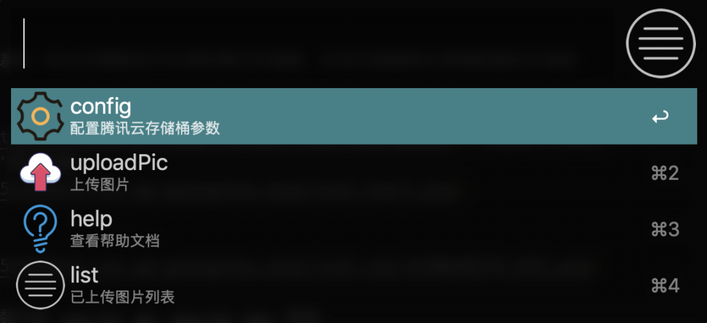 - list:查看已上传图片列表,移动到指定项:Cmd + Y 可查看图片;Enter 可复制图片链接