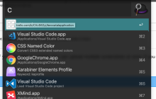 * type c + space and you will show chrome * type p + space, praat (my favorite dsp software used in phonetic sciences) * type v + space, visual studio code * type i + space, iTerm * type m + space, gvim(macvim)