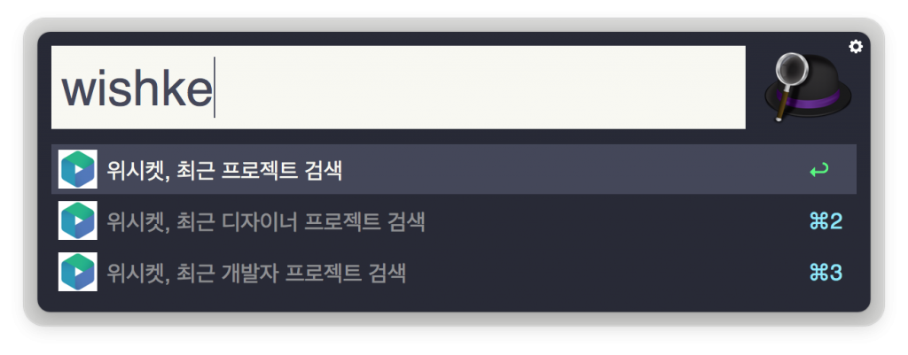 주요코드 : https://github.com/allieus/alfred2-wishket-workflow/blob/master/run.py