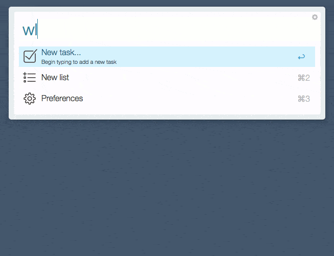 Add your first task! As you type, the workflow will pick out due dates and recurrence intervals in just about any format you could think of. Just write naturally, the due date, recurrence, and task text are updated in Alfred as you type.