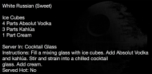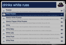 Upon selecting the drink you desire, the ingredients/instructions are shown in the Large Text window and copied to your clipboard.