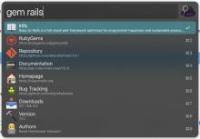 gem <gem name>-- search for a particular gem with this exact name. A list of various attributes of the gem will appear. Press return/enter on any attribute to either open it in your browser (if its value is a link) or copy its value to the clipboard