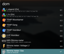 There is quicklook-info on a device, which shows the device-log When tabbing on device you get actions. For now this is only for switches which you can turn on/off. In this mode you also see realtime-data on a device on some devices. The workflow will auto-refresh. On devices you get an info-action which shows all available data on the device.