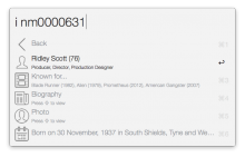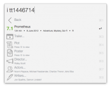 - Infinite browsing. For example, you could view info about a movie, then view info about its director, open the list of movies they are known for, select one of them, see the list of actors starring in that movie... and then go back all the way to your initial search results using the “Back” option