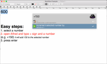 - Open alfred and type + or - and the incrementer number without spaces (e.g. +150)