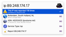 IP Tool can query IPs (both IPv4 and IPv6), domain names, URLs and any strings contain a URL. Alfred v3 and later versions required.