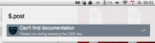 You can start a search by writing "$.SEARCH" or "$ NAME" (with a space). When you run an item you will be redirected to a local documentation page with your default browser (also works without internet connection).