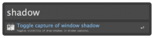 This is a simple action that will allow you to quickly toggle the visibility of drop-shadows during window captures. Toggle it using the "shadow" keyword. You can also use "show" and "hide" as arguments (optional).