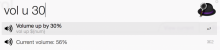 > All the above commands is searchable. > And you can use first letters of a command, e.g. `vol u 20` means `vol up 20`, `vol mu` means `vol mute`.