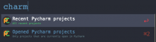 This workflow allows fast access to your recent and opened Pycharm projects without launching a new instance of Pycharm.
