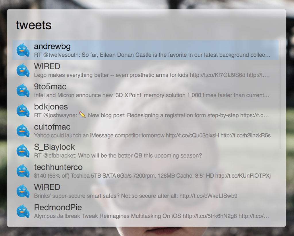Now you can tweet, right from Alfred. AlfredTweet provides a variety of functions for interacting directly with Twitter from Alfred. These functions include: