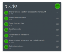 This workflow lets you rename multiple files at once via a file action. Therefore the workflow asks you for a matching pattern first and for a replace pattern after that. Alfred provides you with some useful predefined options. After defining both patterns you'll see a preview of the renaming result.
