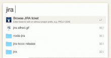 Workflow for Alfred 2 that opens a JIRA ticket in the browser. Enter jira 12345 or jira PROJ-12345 in Alfred, and the full URL for the ticket will be suggested to you.