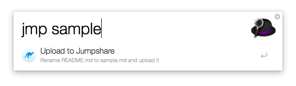 jmpwith some argument to rename and upload the selected items. - Select one or more items in Alfred and enter the file action