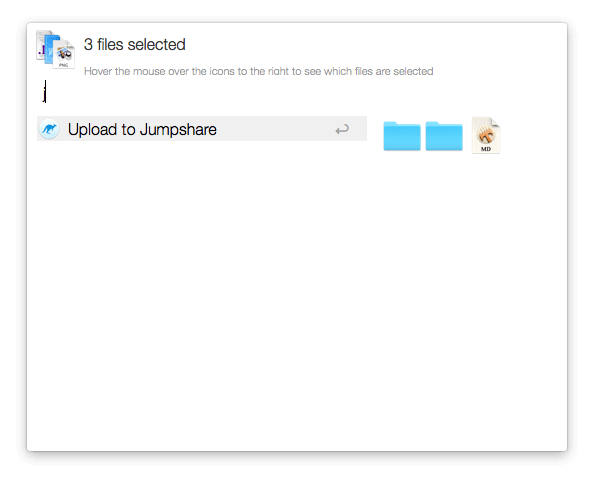Upload to Jumpshare. - Select one or more items in Finder and enter a custom hotkey to upload them.