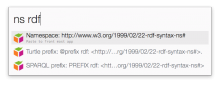 When triggered, the workflow shows the RDF namespace for a given prefix. Additionally, it shows the prefix declaration for SPARQL and Turtle syntax too.