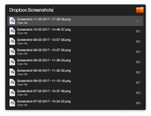 Shows recent files (sorted new to old) in a folder and opens the file, get file actions ,reveal in Finder or share via Dropox (requires WF http://www.packal.org/workflow/drop)