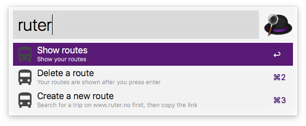 The workflow allows you to manage your public transport trips in Oslo and Akershus (Norway) through Alfred. Now you can easily browse trips and know when to leave, directly from Alfred.