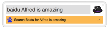 This is a very simple workflow for people who use Baidu as their primary search engine. All you need to do is type 'baidu' and then what you want to search.