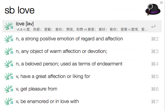sb love查询单词,按住Command+ 回车,打开扇贝官网对应的单词页面