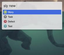 sly new {type} {size} {title} {#tag} {@name} - Add a new item to Backlog (hit return when done)